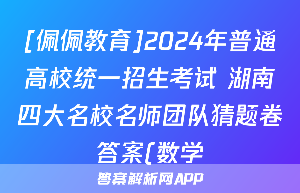 [佩佩教育]2024年普通高校统一招生考试 湖南四大名校名师团队猜题卷答案(数学)正在持续更新,本期2024衡中同卷单元卷答案网为大家整理了相关试题及答案,供大家查缺补漏,高效提升成绩。