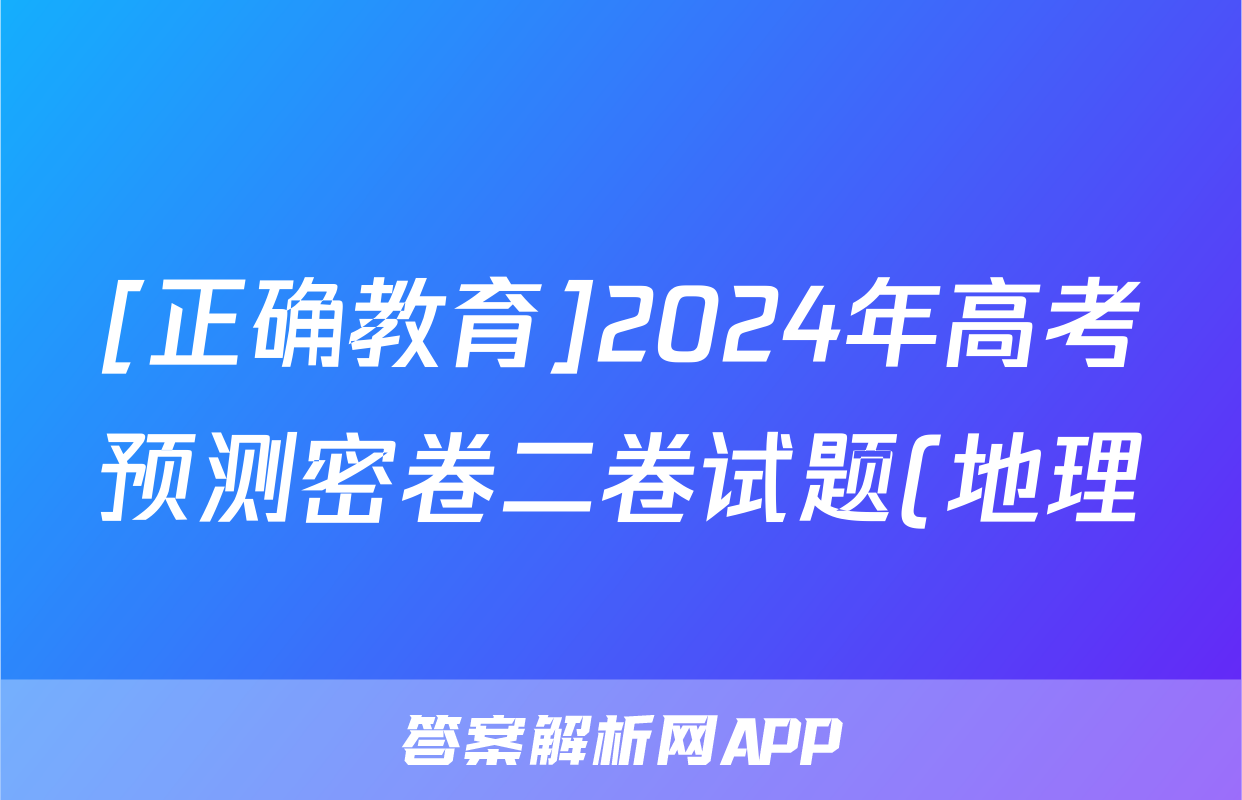 [正确教育]2024年高考预测密卷二卷试题(地理)