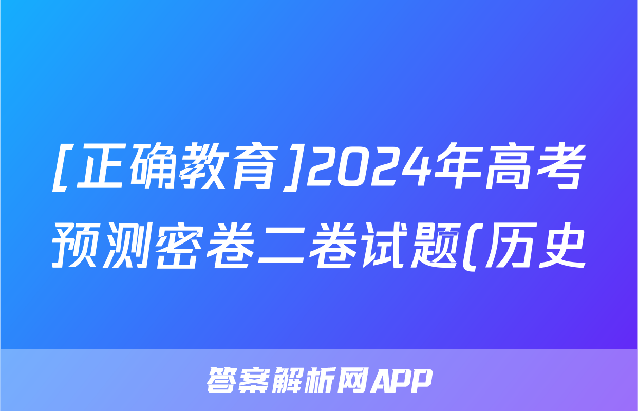 [正确教育]2024年高考预测密卷二卷试题(历史)