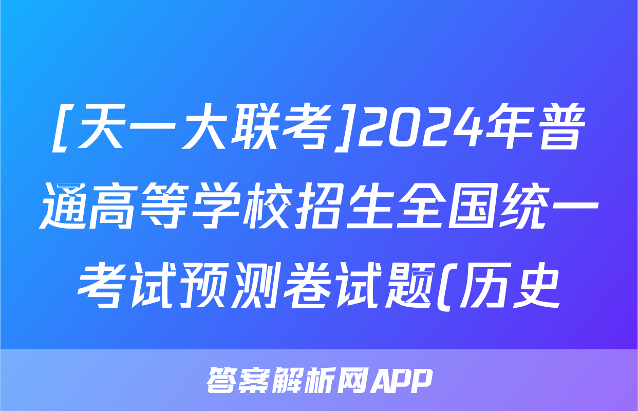 [天一大联考]2024年普通高等学校招生全国统一考试预测卷试题(历史)