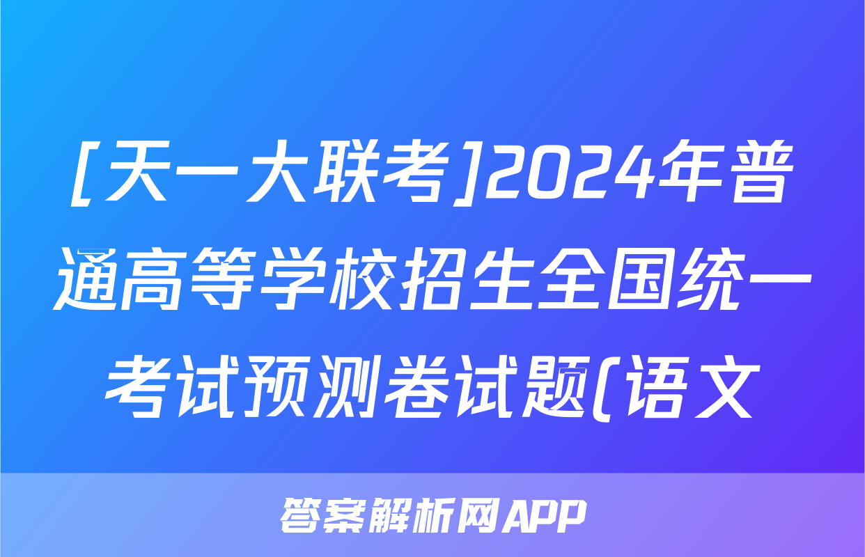 [天一大联考]2024年普通高等学校招生全国统一考试预测卷试题(语文)