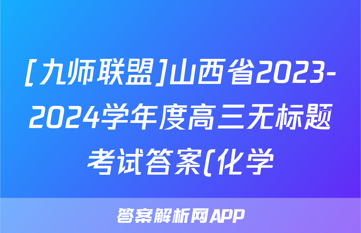 [九师联盟]山西省2023-2024学年度高三无标题考试答案(化学)
