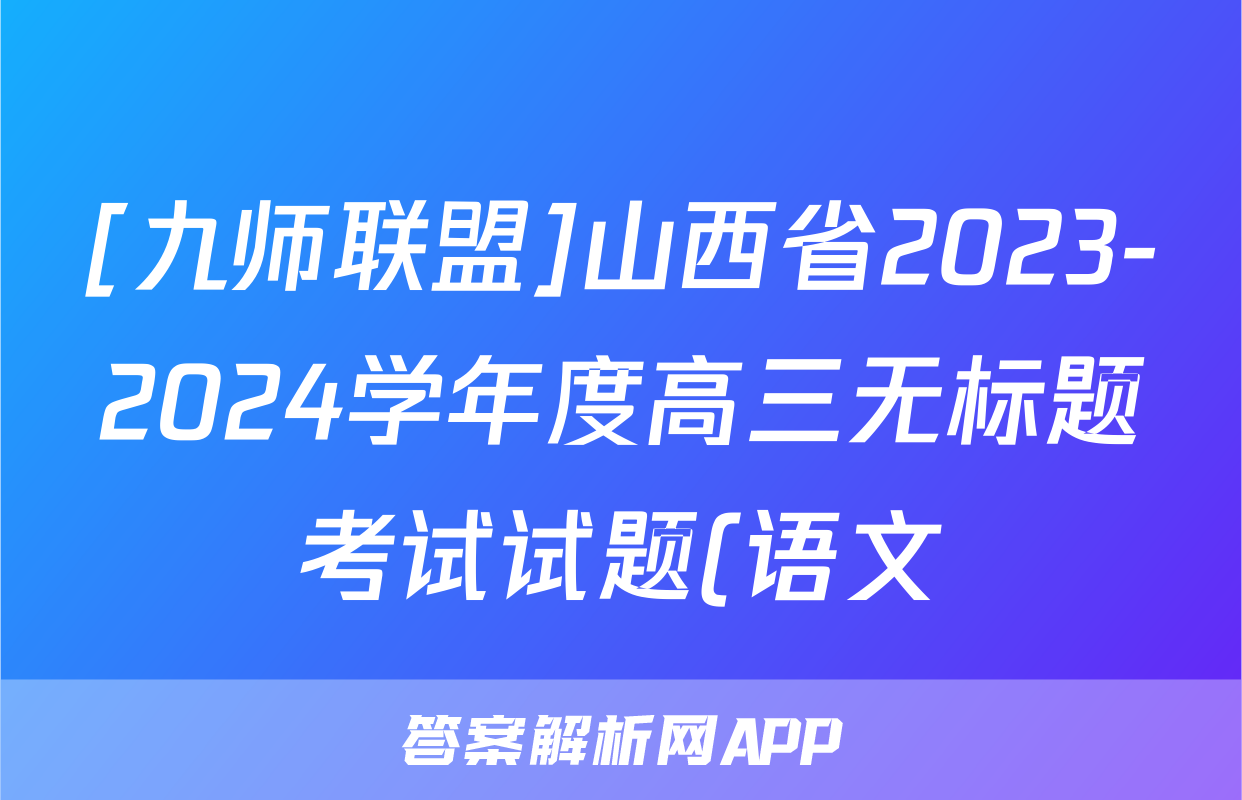 [九师联盟]山西省2023-2024学年度高三无标题考试试题(语文)