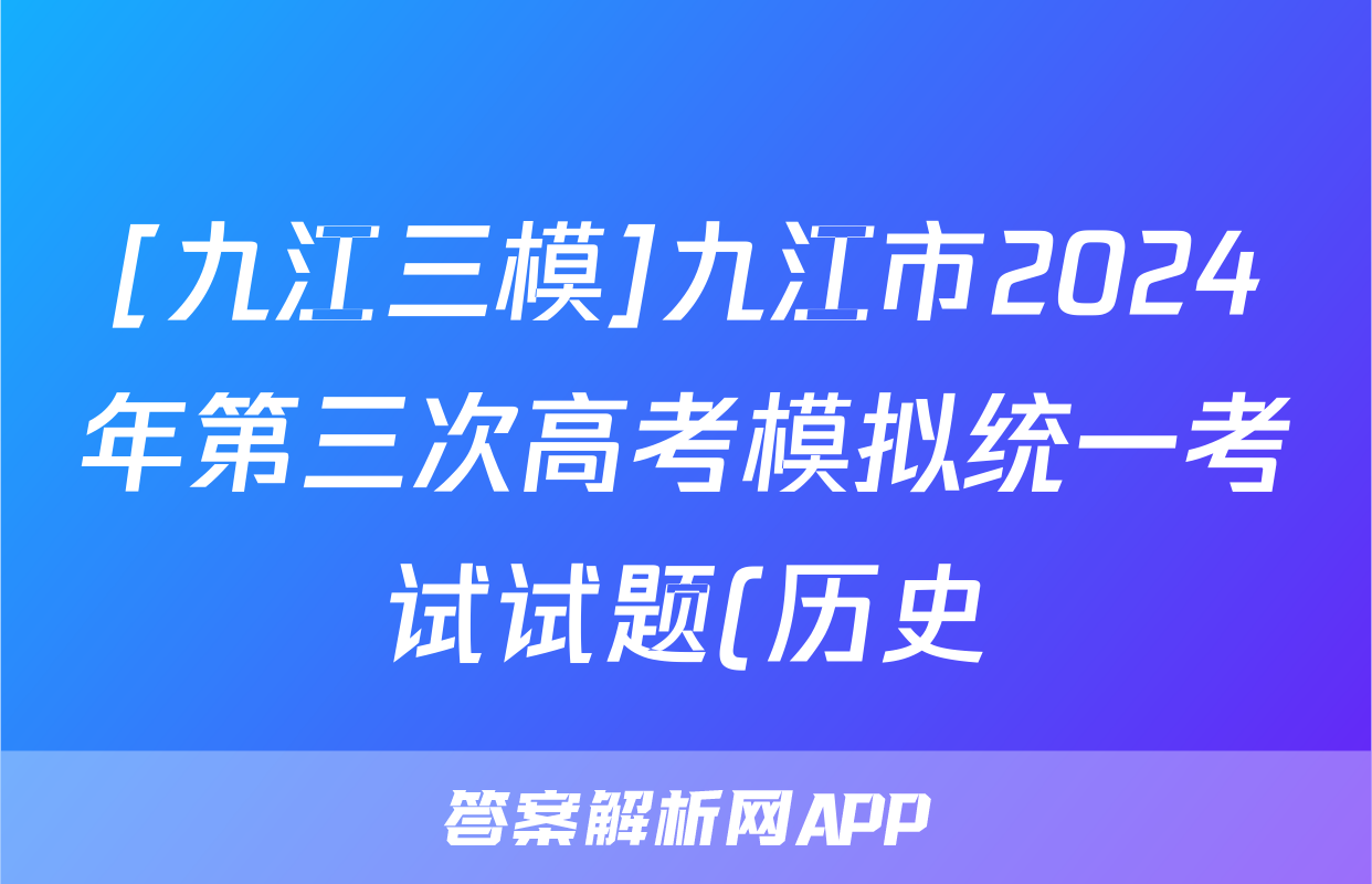 [九江三模]九江市2024年第三次高考模拟统一考试试题(历史)