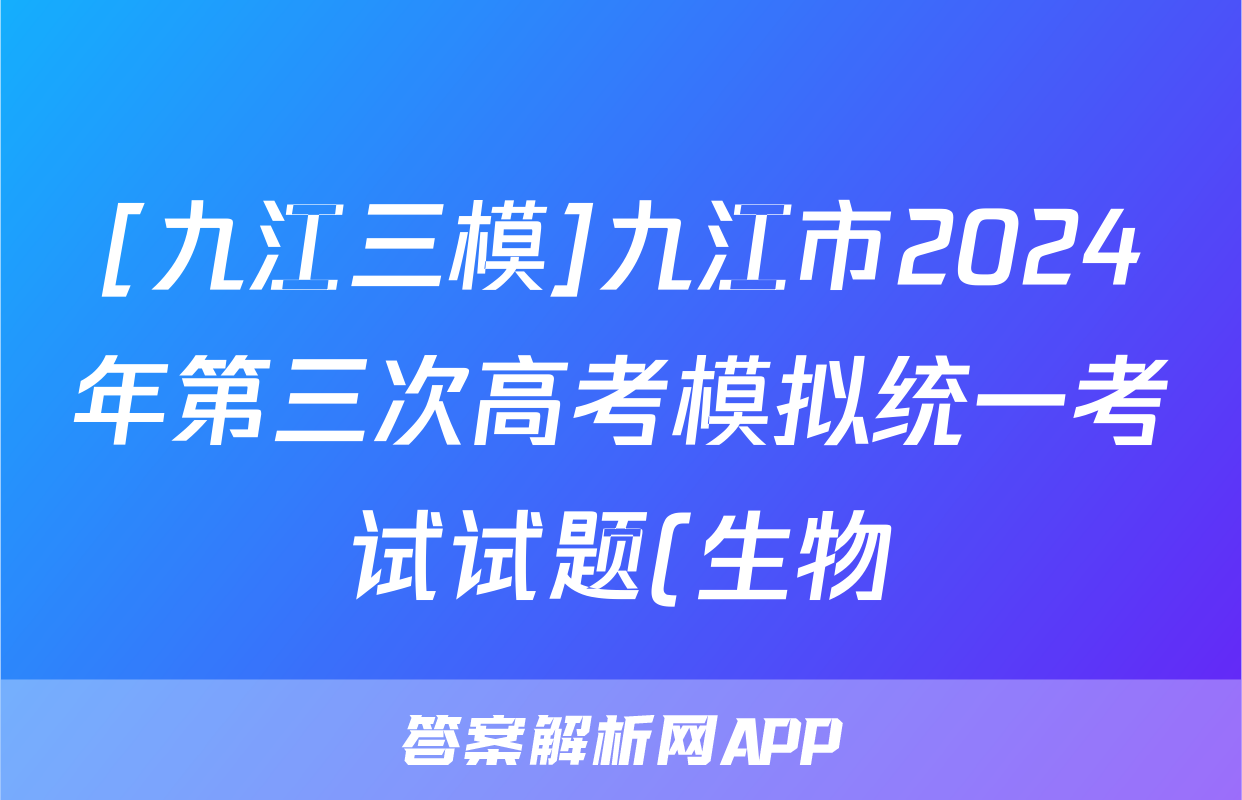 [九江三模]九江市2024年第三次高考模拟统一考试试题(生物)正在持续更新,本期2024衡中同卷单元卷答案网为大家整理了相关试题及答案,供大家查缺补漏,高效提升成绩。