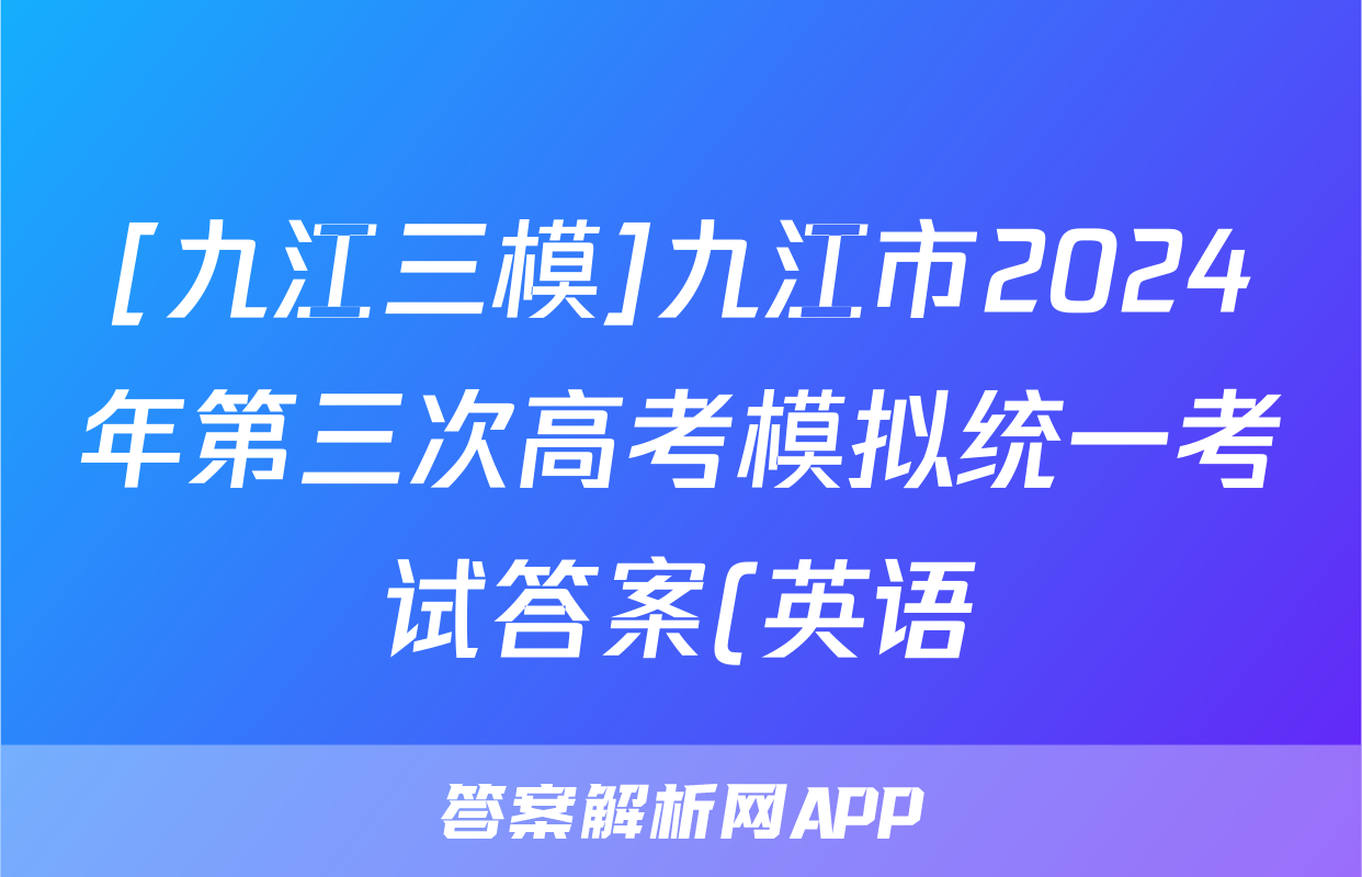 [九江三模]九江市2024年第三次高考模拟统一考试答案(英语)正在持续更新,本期2024衡中同卷单元卷答案网为大家整理了相关试题及答案,供大家查缺补漏,高效提升成绩。
