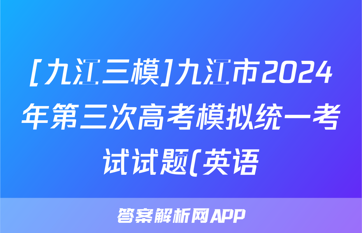 [九江三模]九江市2024年第三次高考模拟统一考试试题(英语)正在持续更新,本期2024衡中同卷单元卷答案网为大家整理了相关试题及答案,供大家查缺补漏,高效提升成绩。