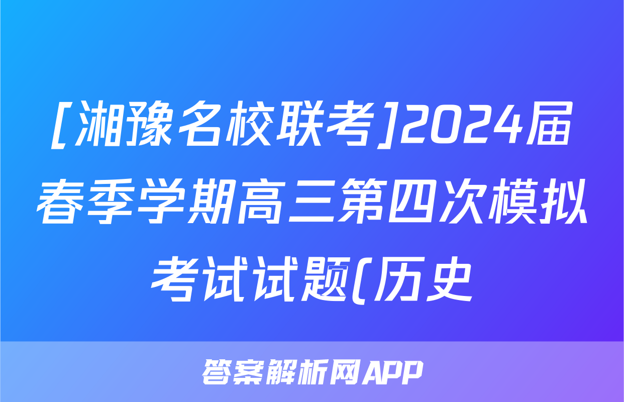 4、[湘豫名校联考]2024届春季学期高三第四次模拟考试答案(历史)