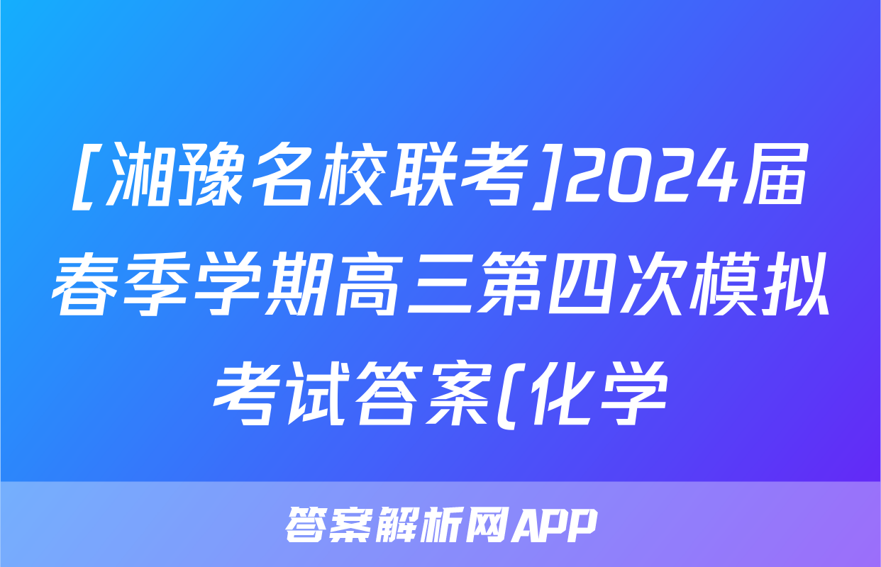 [湘豫名校联考]2024届春季学期高三第四次模拟考试答案(化学)