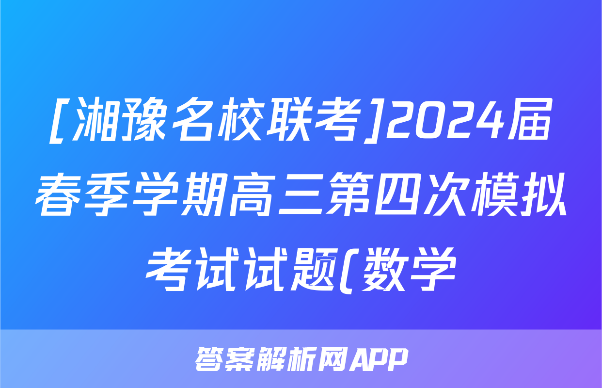 [湘豫名校联考]2024届春季学期高三第四次模拟考试试题(数学)