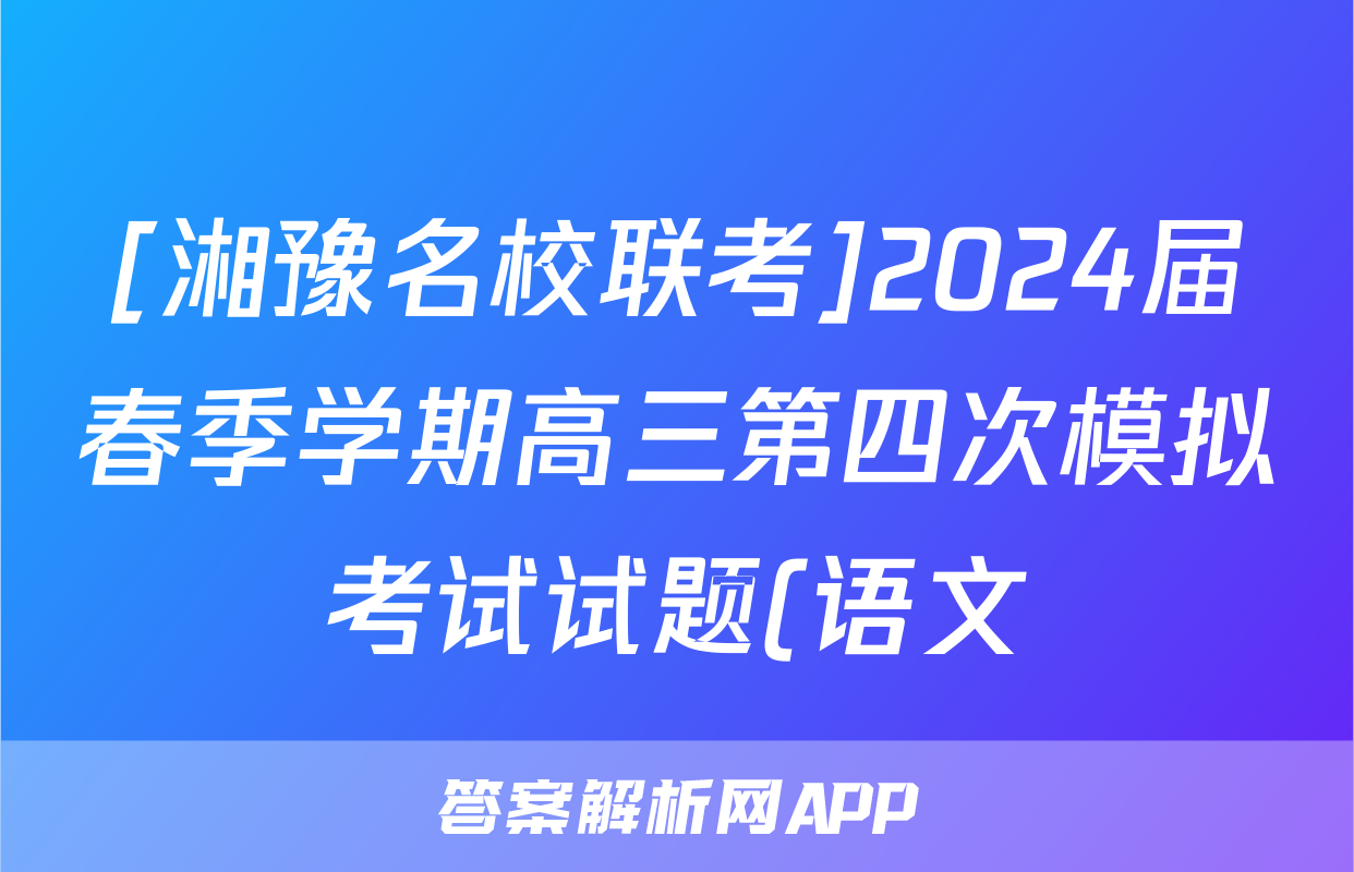 [湘豫名校联考]2024届春季学期高三第四次模拟考试试题(语文)