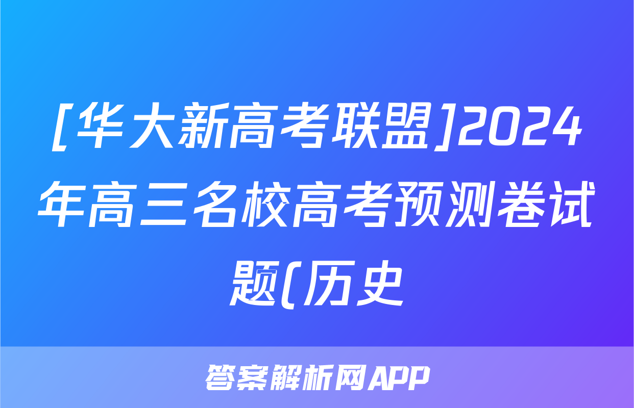 [华大新高考联盟]2024年高三名校高考预测卷试题(历史)