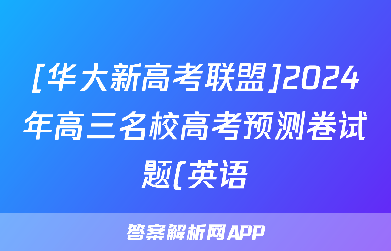 [华大新高考联盟]2024年高三名校高考预测卷试题(英语)