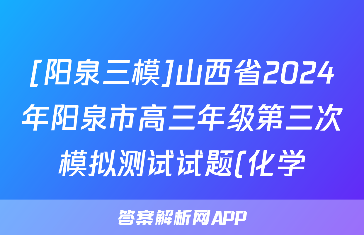 [阳泉三模]山西省2024年阳泉市高三年级第三次模拟测试试题(化学)
