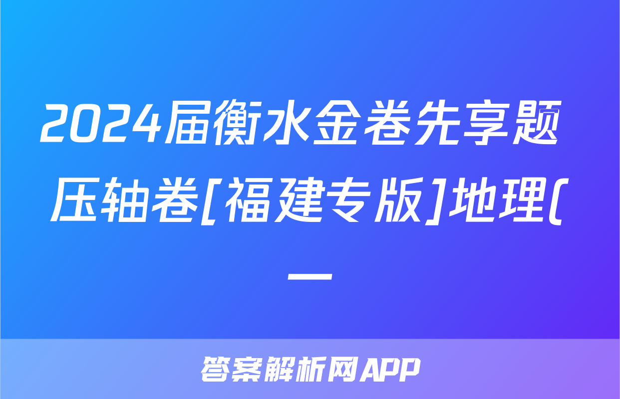 2024届衡水金卷先享题 压轴卷[福建专版]地理(一)1试题