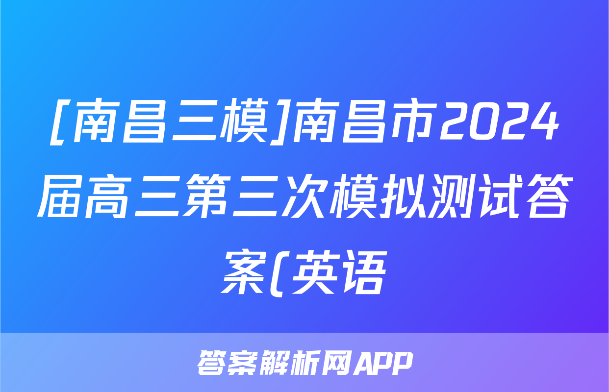 [南昌三模]南昌市2024届高三第三次模拟测试答案(英语)正在持续更新,本期2024衡中同卷单元卷答案网为大家整理了相关试题及答案,供大家查缺补漏,高效提升成绩。