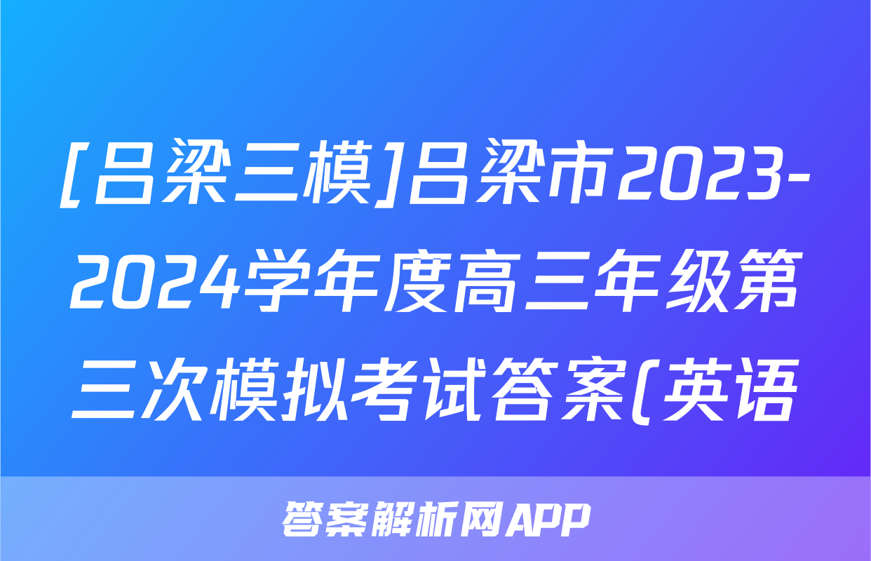 [吕梁三模]吕梁市2023-2024学年度高三年级第三次模拟考试答案(英语)