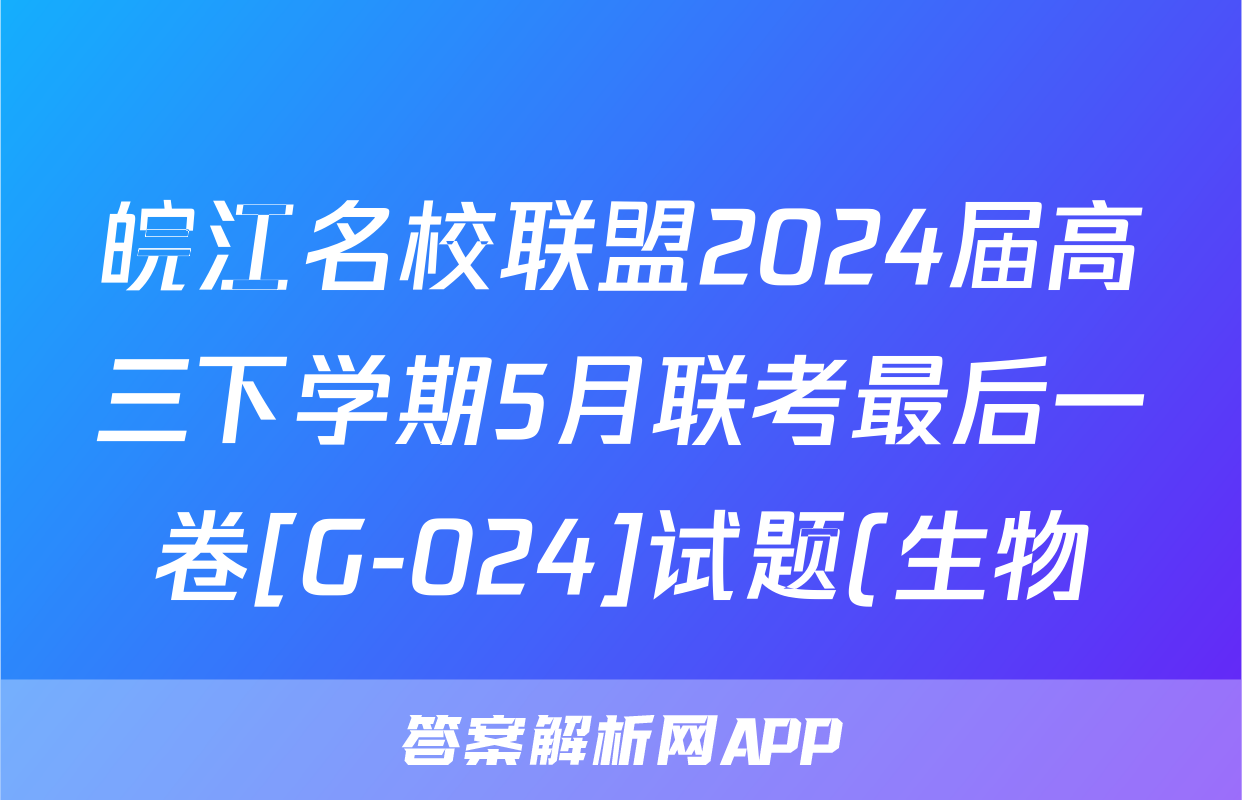 皖江名校联盟2024届高三下学期5月联考最后一卷[G-024]试题(生物)