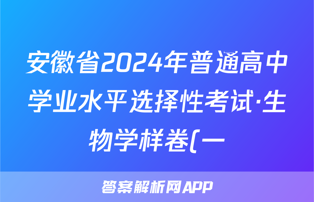 安徽省2024年普通高中学业水平选择性考试·生物学样卷(一)1[24·(新高考)高考样卷·生物学·AH]试题正在持续更新,本期2024衡中同卷单元卷答案网为大家整理了相关试题及答案,供大家查缺补漏,高效提升成绩。