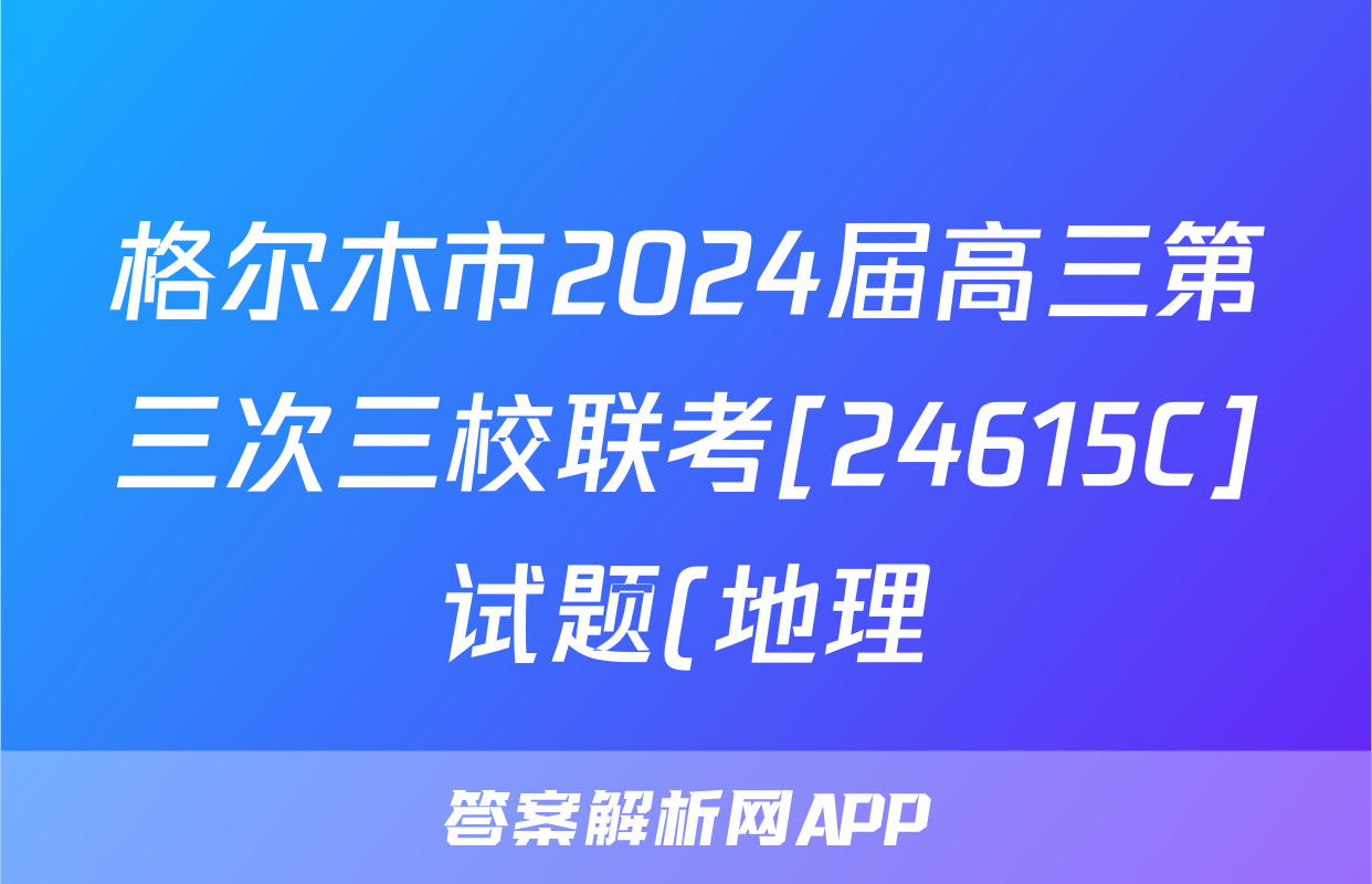 格尔木市2024届高三第三次三校联考[24615C]试题(地理)
