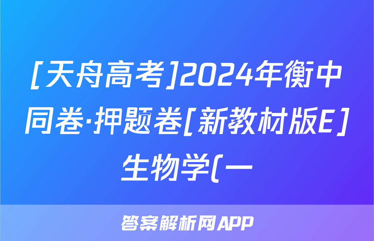 [天舟高考]2024年衡中同卷·押题卷[新教材版E]生物学(一)1答案