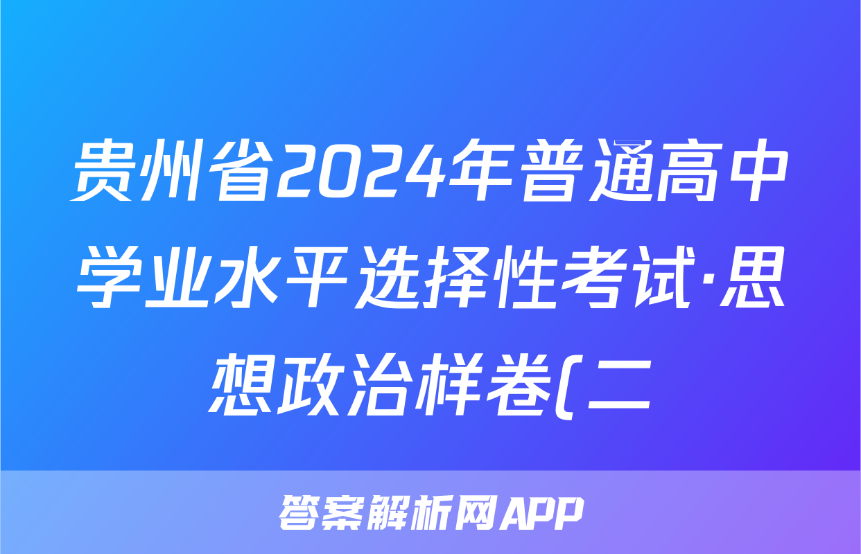贵州省2024年普通高中学业水平选择性考试·思想政治样卷(二)2[24·(新高考)高考样卷·思想政治·GZ]答案