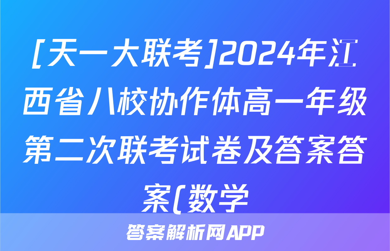[天一大联考]2024年江西省八校协作体高一年级第二次联考试卷及答案答案(数学)