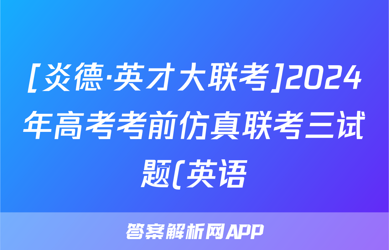[炎德·英才大联考]2024年高考考前仿真联考三试题(英语)