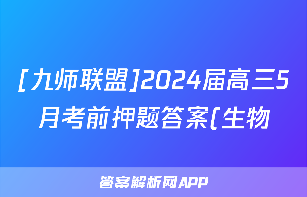 [九师联盟]2024届高三5月考前押题答案(生物)