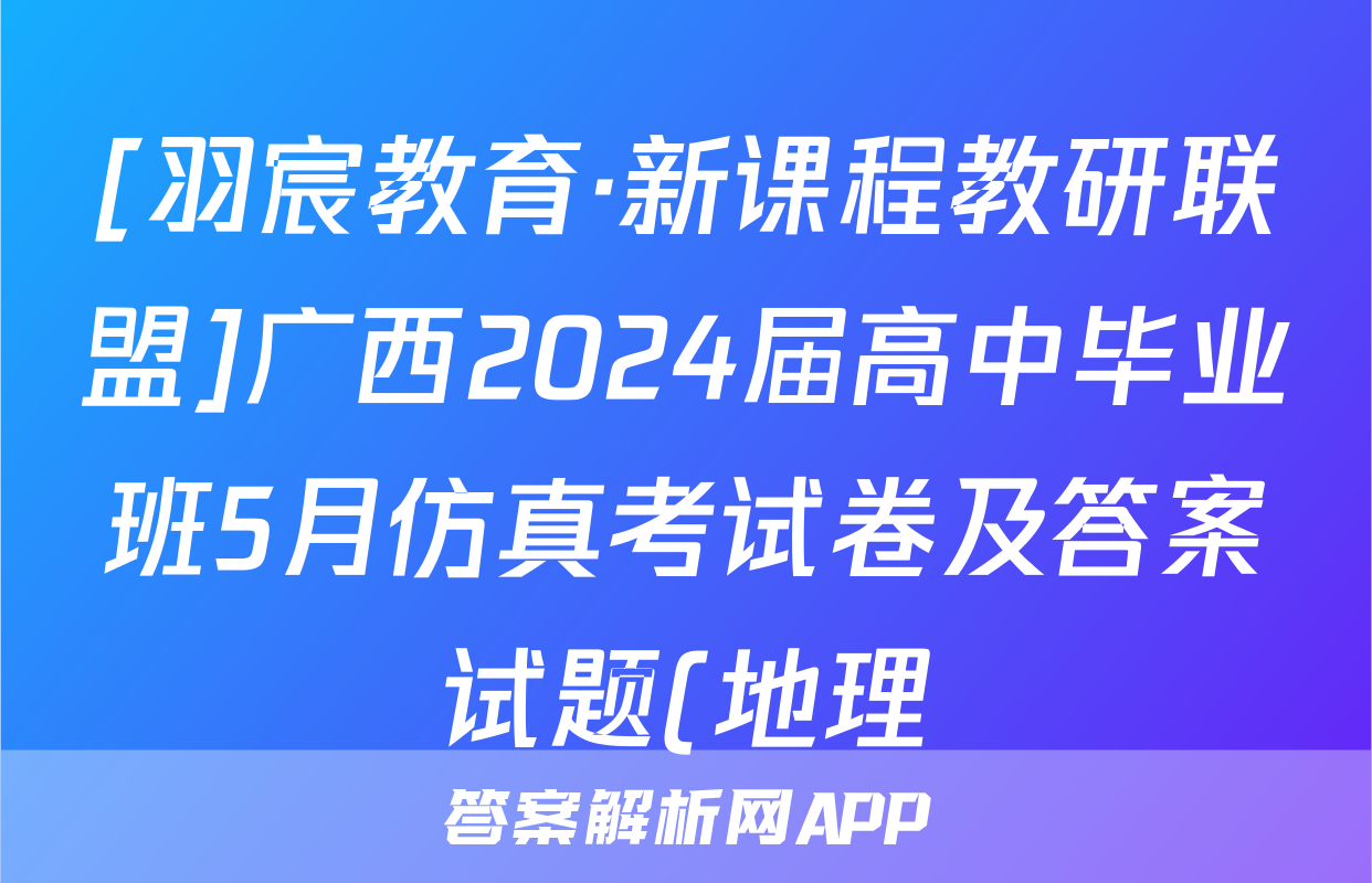 [羽宸教育·新课程教研联盟]广西2024届高中毕业班5月仿真考试卷及答案试题(地理)