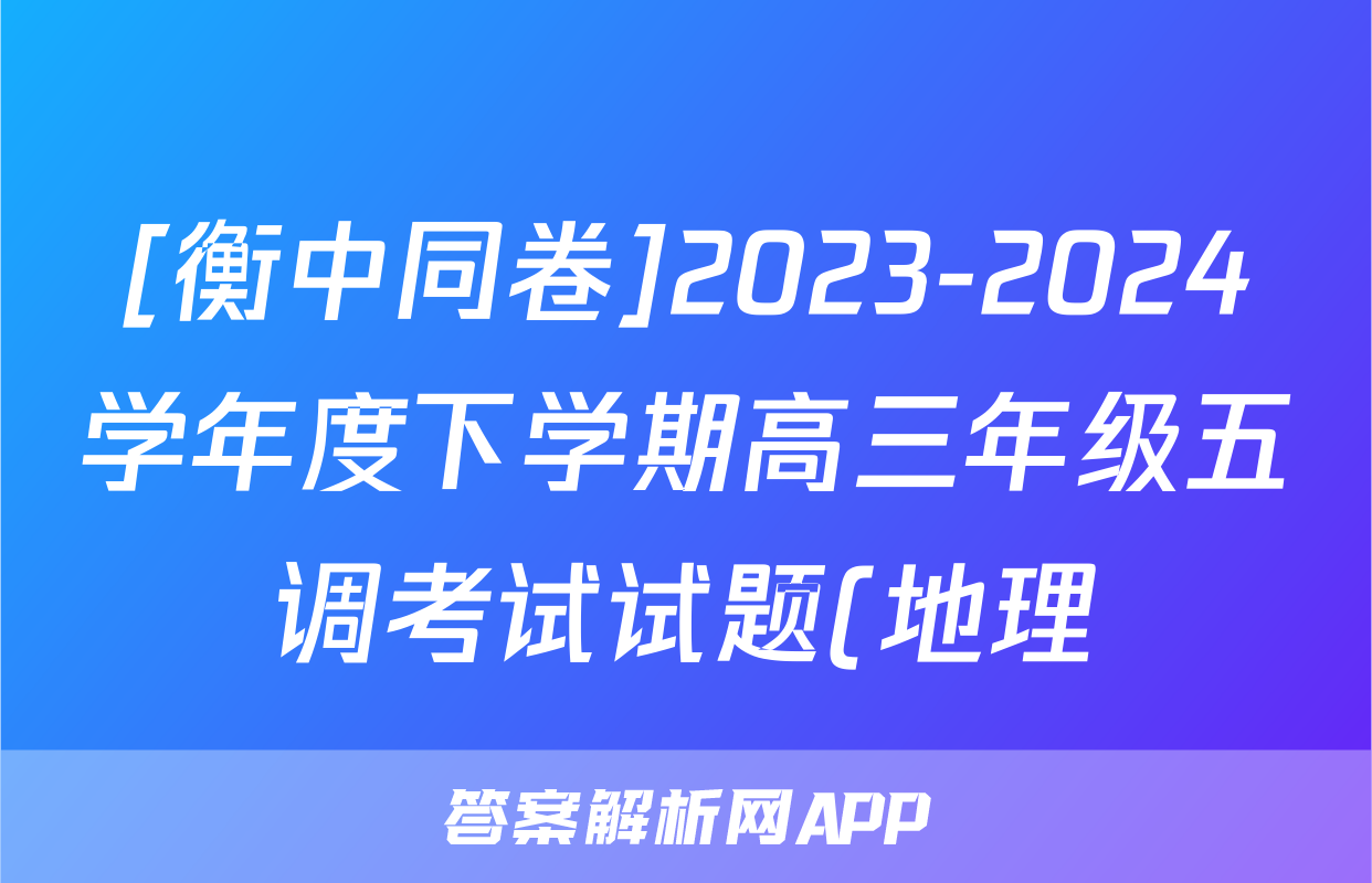 [衡中同卷]2023-2024学年度下学期高三年级五调考试试题(地理)