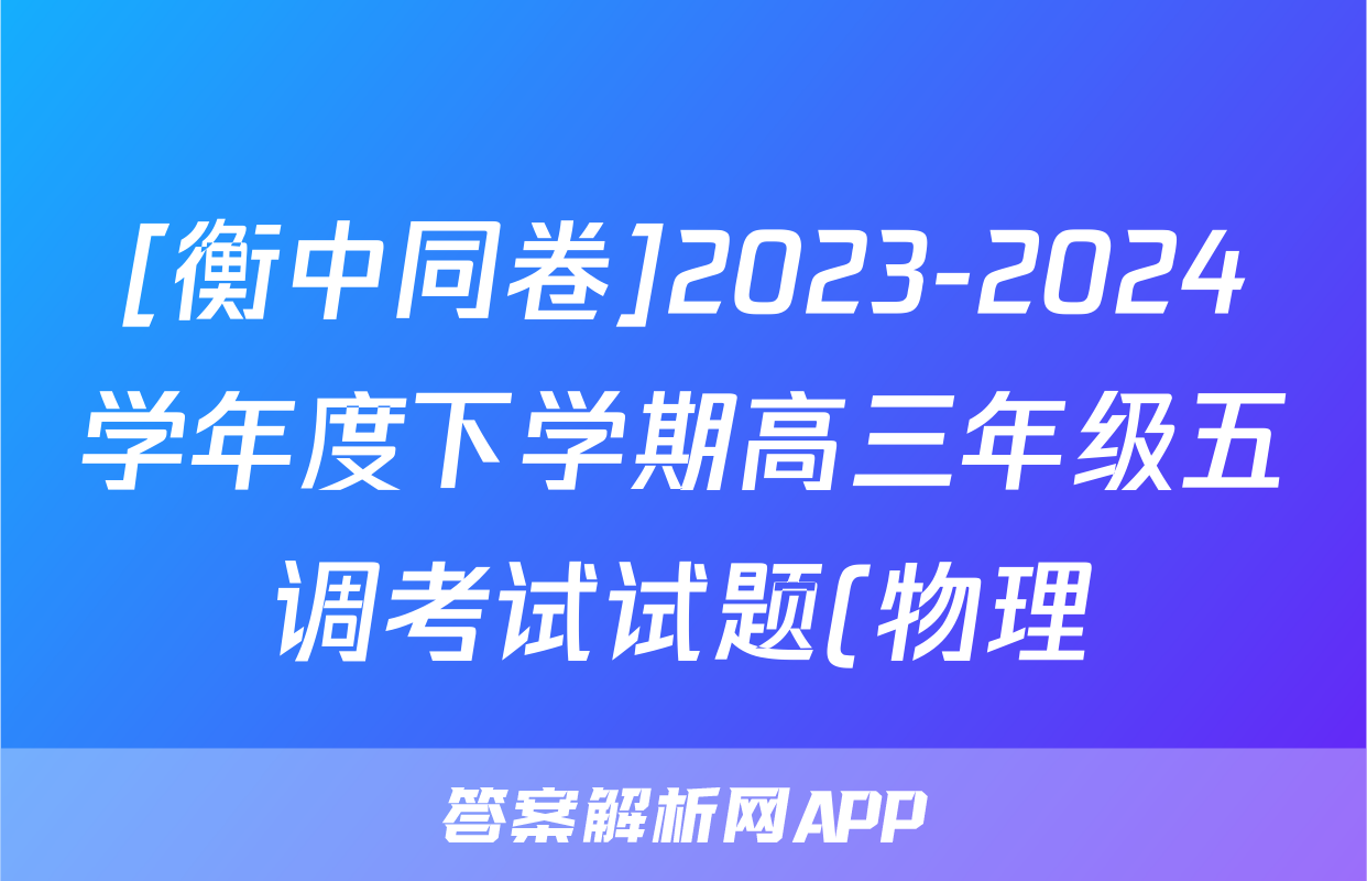 [衡中同卷]2023-2024学年度下学期高三年级五调考试试题(物理)