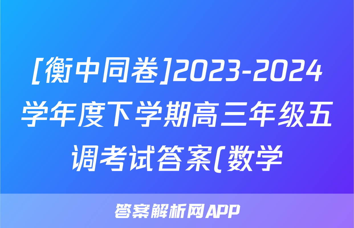 [衡中同卷]2023-2024学年度下学期高三年级五调考试答案(数学)正在持续更新,本期2024衡中同卷单元卷答案网为大家整理了相关试题及答案,供大家查缺补漏,高效提升成绩。
