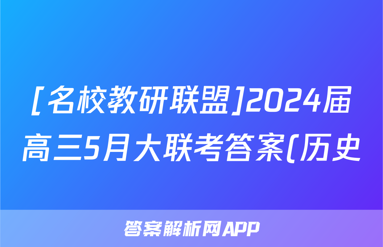 [名校教研联盟]2024届高三5月大联考答案(历史)