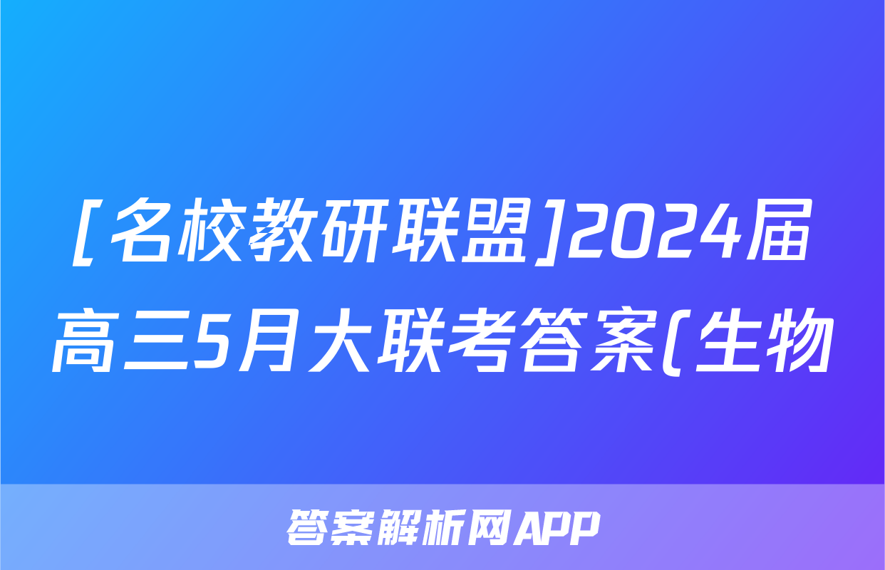 [名校教研联盟]2024届高三5月大联考答案(生物)