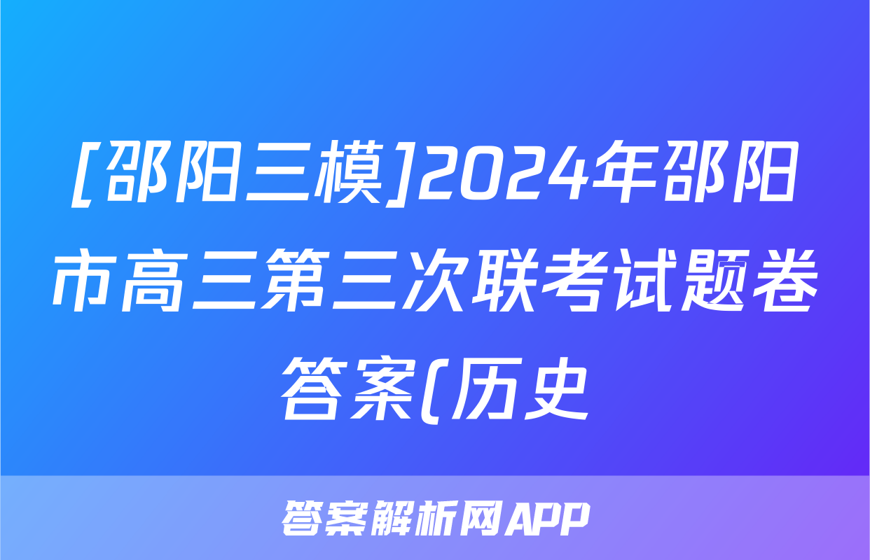[邵阳三模]2024年邵阳市高三第三次联考试题卷答案(历史)