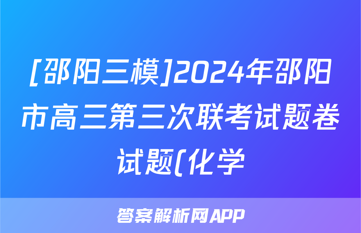 [邵阳三模]2024年邵阳市高三第三次联考试题卷试题(化学)