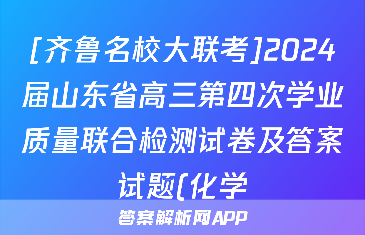 [齐鲁名校大联考]2024届山东省高三第四次学业质量联合检测试卷及答案试题(化学)