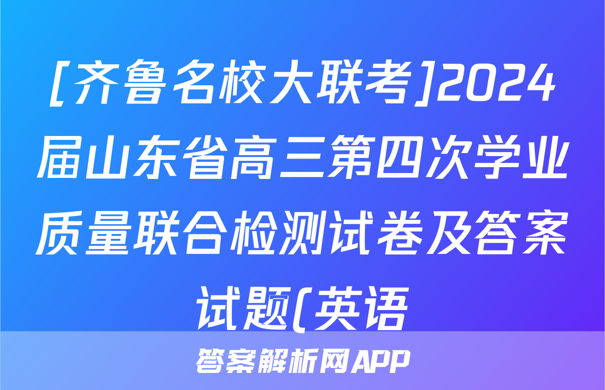 [齐鲁名校大联考]2024届山东省高三第四次学业质量联合检测试卷及答案试题(英语)