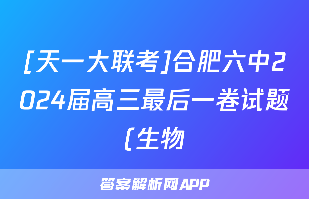 1、天一大联考 合肥六中2024届高三最后一卷试题(生物)