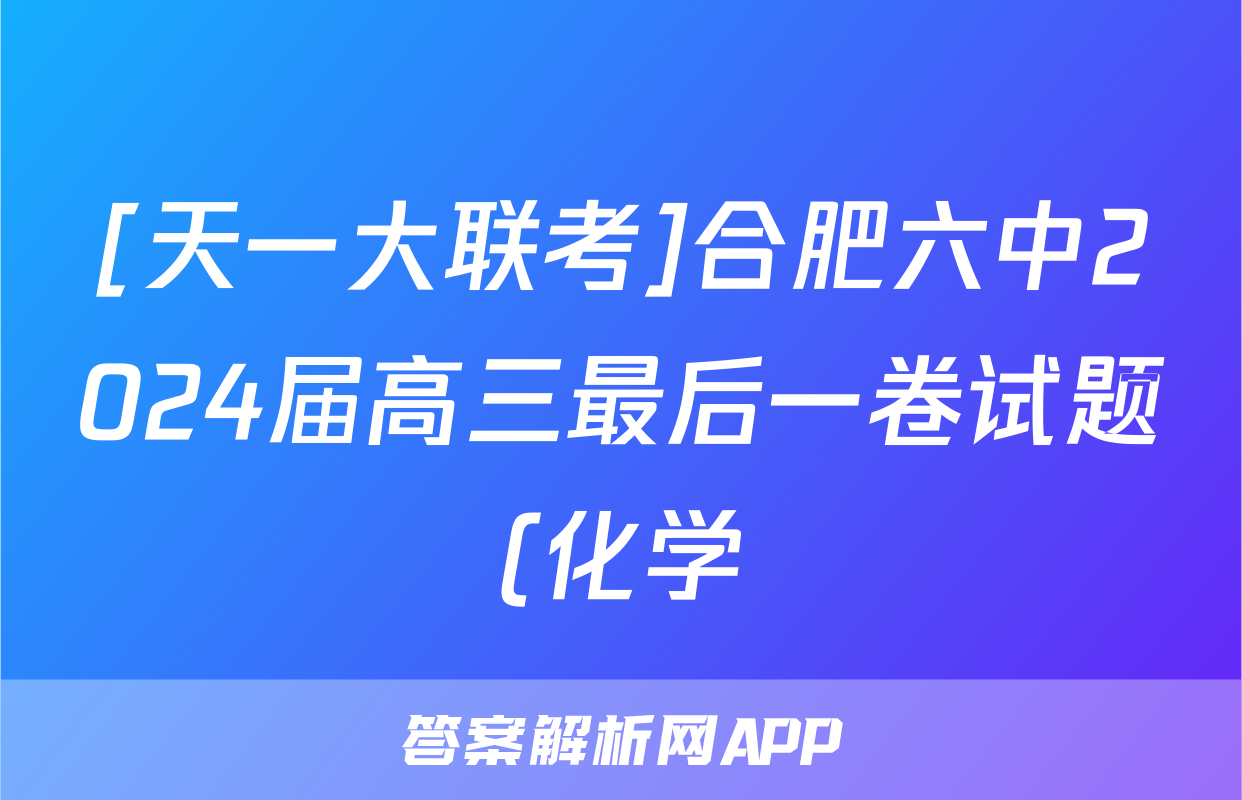3、[天一大联考]合肥六中2024届高三最后一卷答案(化学)