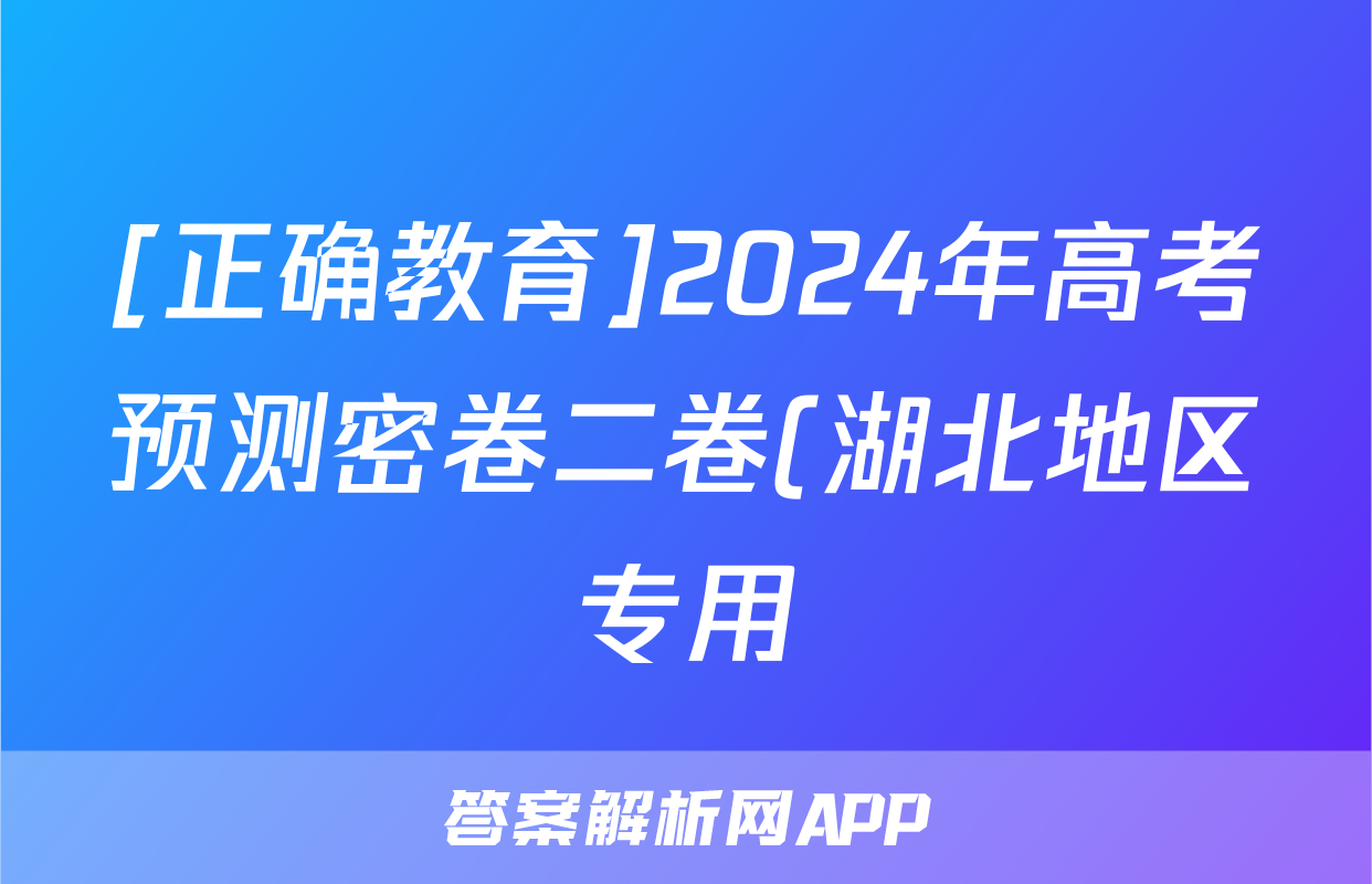 [正确教育]2024年高考预测密卷二卷(湖北地区专用)政治(湖北)答案