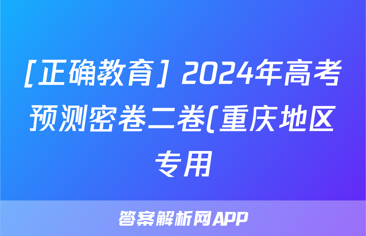 3、[正确教育] 2024年高考预测密卷二卷(重庆地区专用)地理答案