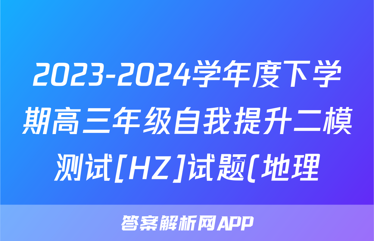 2023-2024学年度下学期高三年级自我提升二模测试[HZ]试题(地理)
