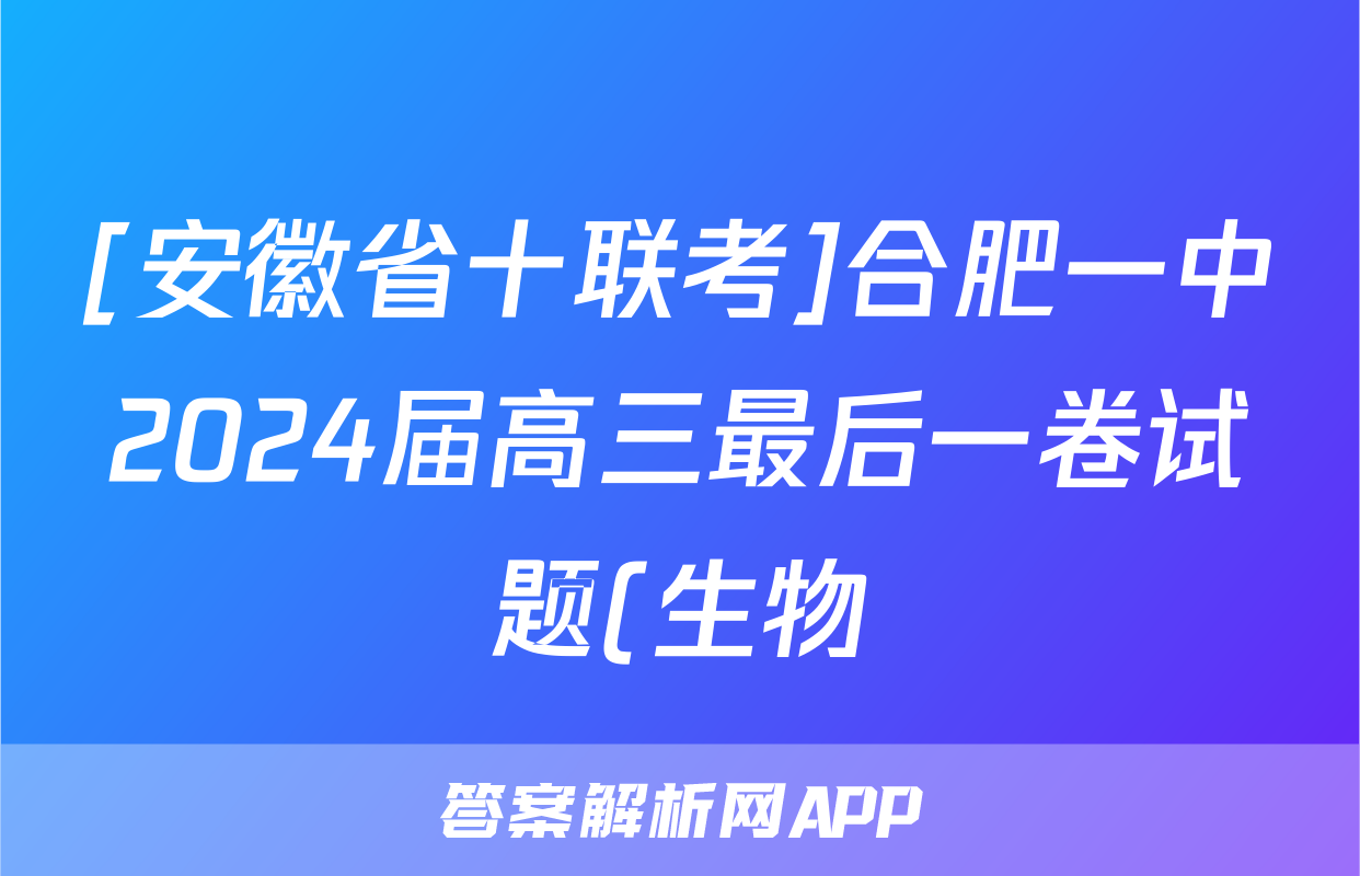 [安徽省十联考]合肥一中2024届高三最后一卷试题(生物)