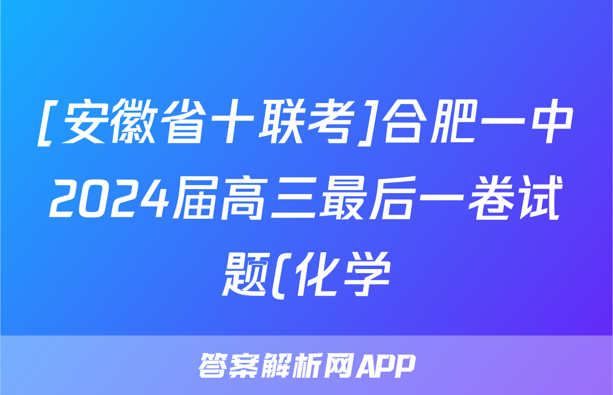 [安徽省十联考]合肥一中2024届高三最后一卷试题(化学)