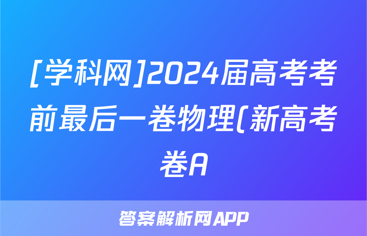 [学科网]2024届高考考前最后一卷物理(新高考卷A)(新教材)答案正在持续更新,本期2024衡中同卷单元卷答案网为大家整理了相关试题及答案,供大家查缺补漏,高效提升成绩。