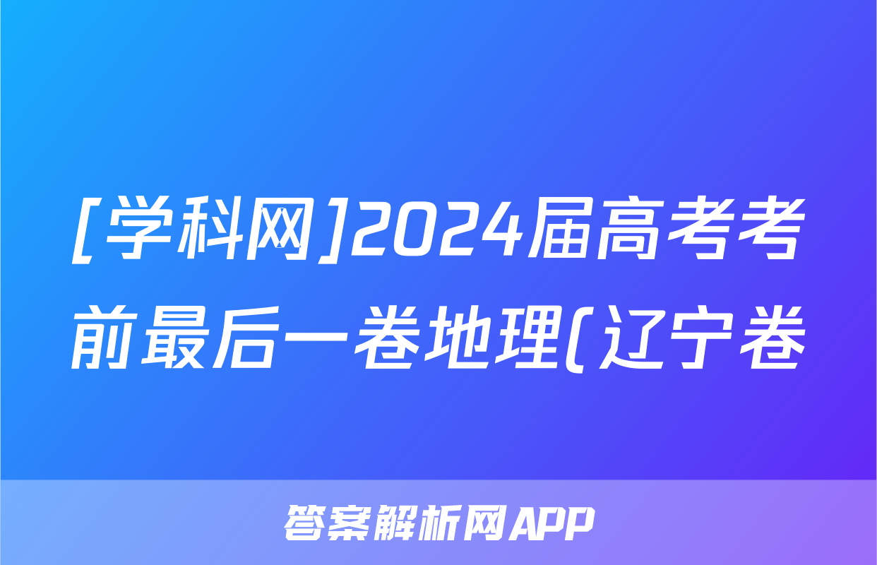 [学科网]2024届高考考前最后一卷地理(辽宁卷)试题