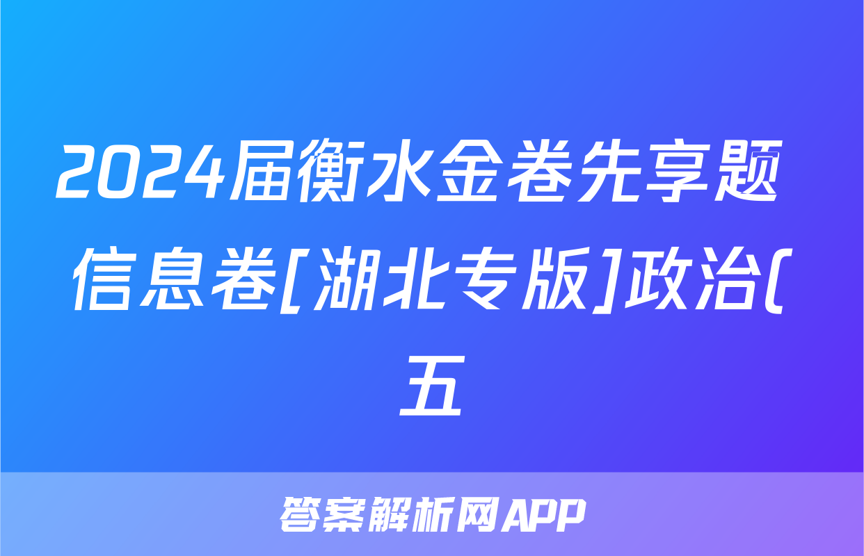 2024届衡水金卷先享题 信息卷[湖北专版]政治(五)5答案