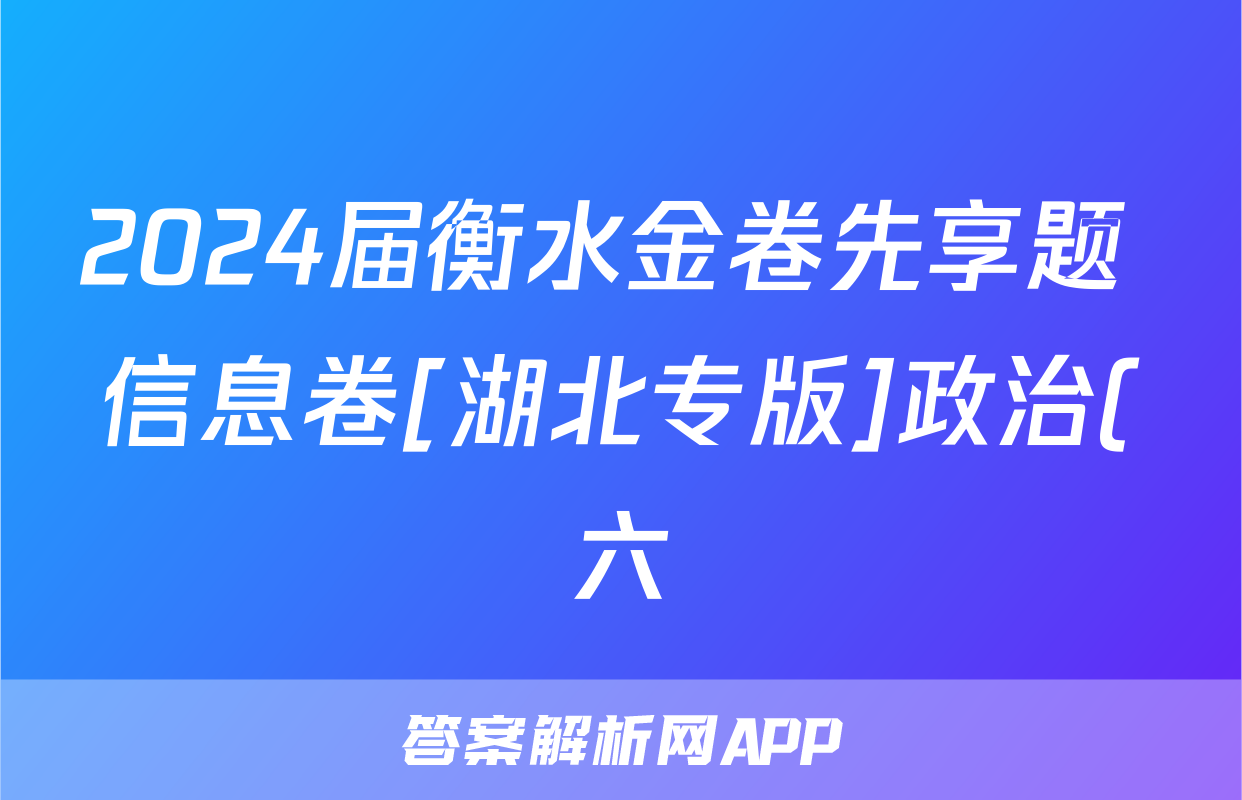2024届衡水金卷先享题 信息卷[湖北专版]政治(六)6答案